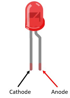 La led ne peut pas se brancher dans n’importe quel sens : La broche la plus longue ou recourbé appelé Anode doit se brancher sur la borne + de votre carte Arduino.