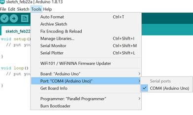 On va maintenant choisir le Port COM sur lequel est branché la carte Arduino. Souvent, le logiciel Arduino IDE vous le propose directement, comme ceci :