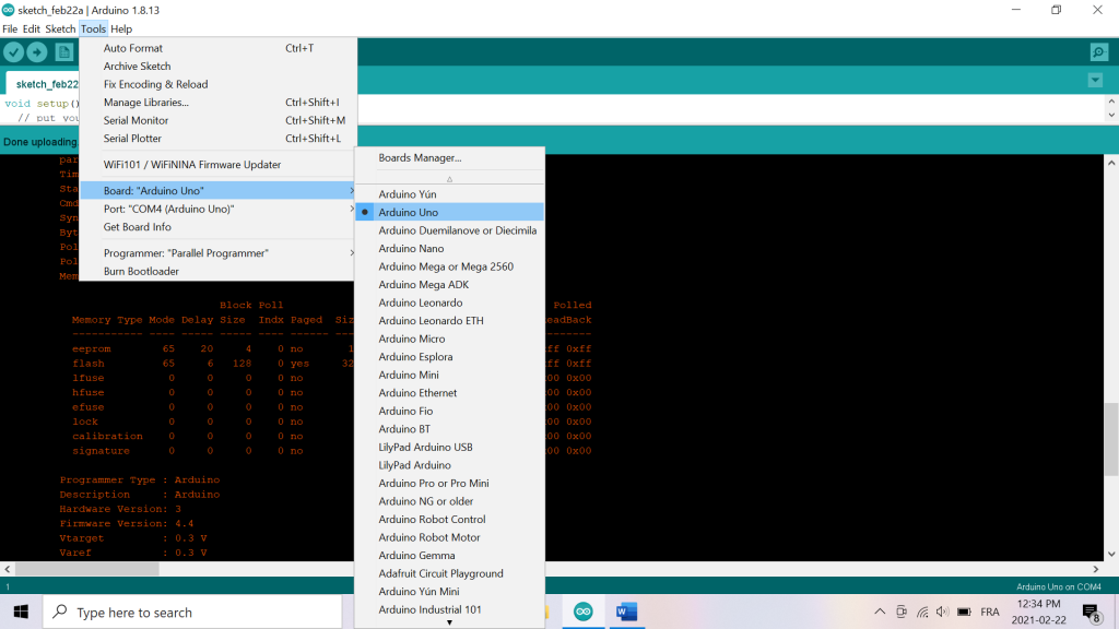 Il vous reste plus qu’à téléverser  le programme avec le bouton que l’on a vu plus tôt. si vous avez erreur c’est que vous avez une problème de téléversement.