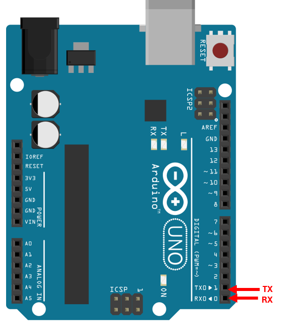 Introduction L’UART (Universal Asynchronous Receiver-Transmitter) est un protocole de communication série essentiel dans le monde de l’électronique et des microcontrôleurs. Il permet une communication simple et efficace entre un Arduino et d’autres périphériques comme des capteurs, des modules GPS, des modules Bluetooth, des ordinateurs, etc. Cette communication se fait via les broches numériques de l’Arduino, utilisant une transmission asynchrone de données série. Fonctionnement de la liaison Une liaison UART (“Universal Asynchronous Receiver Transmitter”), est un émetteur-récepteur asynchrone universel. La liaison UART est exclusive, cela signifie qu’un maître peut discuter qu’avec un seul esclave par liaison, comme on peut le voir juste en dessous : La liaison uart est asynchrone, ce qui signifie que la transmission ne nécessite pas d’horloge mais ajoute un bit de parité aux données avant la transmission.C’est une liaison exclusive, cela veut dire que l’on a qu’un seul fil fait passer tous les bits de données. La liaison UART est une une liaison full duplex, cela veut dire que l’on peut écouter tout en émettant des bits. La liaison UART est à faible débit, de 100 bps à 200 kbps.L’UART convertit les données parallèles du microcontrôleur en données série, les transmet bit par bit, puis reconvertit les données série en données parallèles du côté récepteur. La communication UART est asynchrone, ce qui signifie qu’elle ne nécessite pas de signal d’horloge partagé entre les dispositifs de transmission et de réception.Les lignes de communication UART sont :TX (Transmission) : Envoie les données.RX (Réception) : Reçoit les données.Ces deux lignes permettent un échange bidirectionnel de données. Broche UART sur la carte Arduino Sur les cartes Arduino, l’UART est utilisé durant la transmission d’un programme. C’est pourquoi on vous conseil de déconnecter le composant branché sur l’UART si vous souhaitez téléverser un nouveau programme. Dans le cas contraire vous allez avoir une erreur sur Arduino IDE.Configuration des BrochesArduino Uno/Nano : TX (broche 1), RX (broche 0)Arduino Mega : Plusieurs ports série matériels, y compris Serial1, Serial2, et Serial3.Voici où sont placés les broches sur la carte Arduino UNO : Ecriture sur l’UART L’écriture sur l’UART est très simple avec Arduino car le bus peut-être lue avec le moniteur série d’Arduino IDE. Voici un programme qui permet d’écrire sur l’UART de votre carte Arduino : void setup() { Serial.begin(9600); // Initialise la communication série à 9600 bauds } void loop() { Serial.println("Hello, UART!"); // Envoie le texte sur le port série delay(1000); // Attendre une seconde } Pour voir le « Hello UART », il vous suffit de connectez votre Arduino à votre ordinateur et d’ouvrir le moniteur série dans Arduino IDE à 9600 bd/s. Lecture sur l’UART La lecture de l’UART s’utilise aussi avec le moniteur série d’Arduino IDE. Il vous suffit d’envoyer du texte ou valeur à travers le moniteur série et la carte Arduino va vous répondre ce qu’elle a lue toujours sur le moniteur série avec le programme suivant : void setup() { Serial.begin(9600); // Initialise la communication série à 9600 bauds } void loop() { if (Serial.available() > 0) { // Vérifie s'il y a des données disponibles int incomingByte = Serial.read(); // Lit les données Serial.print("J'ai reçu : "); Serial.println(incomingByte, DEC); // Affiche les données reçues } } Conclusion Si vous souhaitez en savoir plus sur les bus de communication sur Arduino, nous avons fait des cous sur le SPI et l’I2C.