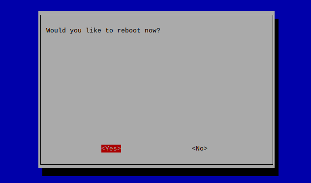 En quittant Raspi-config on vous propose de redémarrer votre Raspberry Pi afin que la nouvelle configuration soit prise en compte :