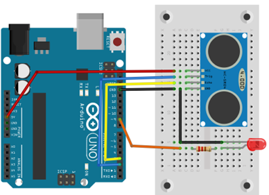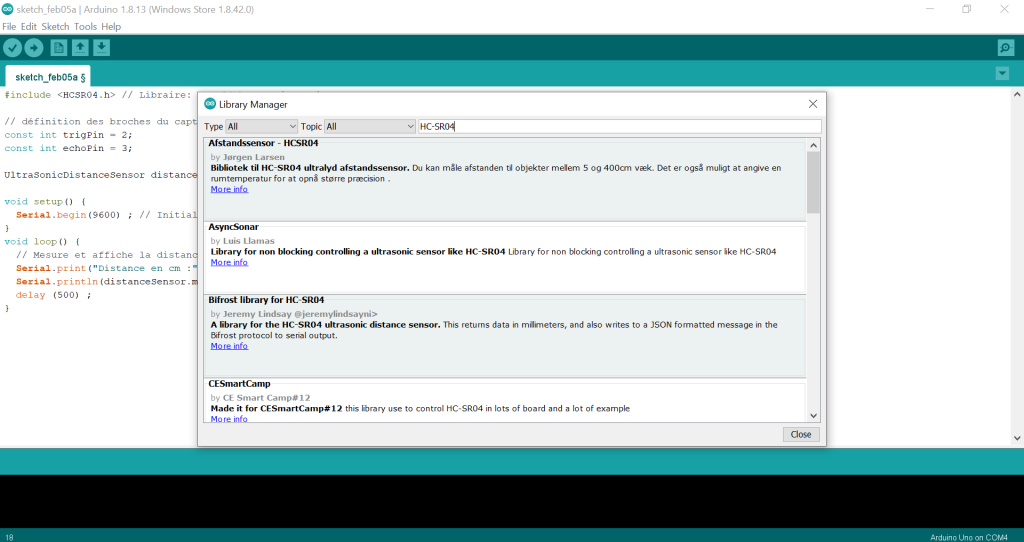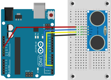 On récupère le temps que met le signal à revenir au capteur : duree = pulseIn(echoPin, HIGH);