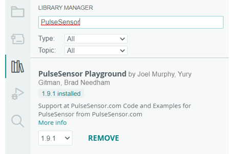Pour utiliset le capteur de fréquence cardiaque vous aurez besoin d’installer la librairie PulseSensor :