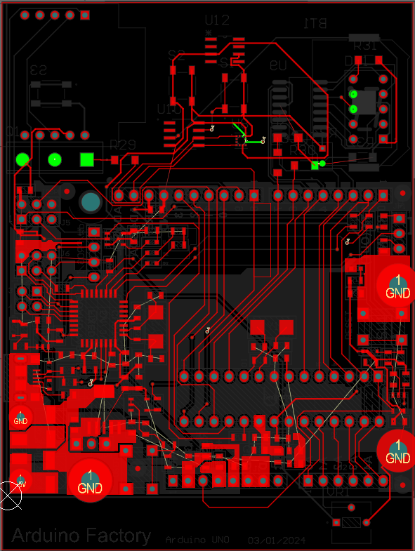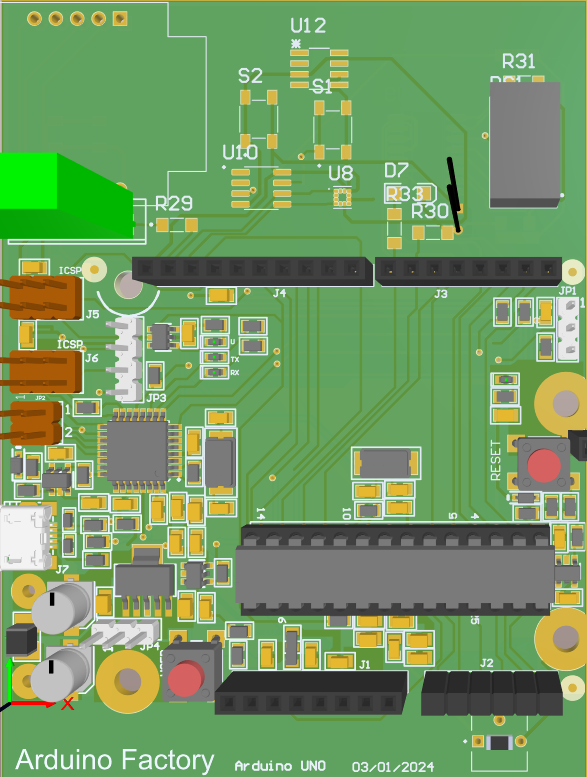 L’élément principal de la carte PCB est l’Atmega 328P. Fabriqué par Atmel, il fait partie de la famille des AVR, offrant une combinaison puissante de performances et d’efficacité énergétique. Avec une architecture RISC 8 bits, une fréquence d’horloge pouvant atteindre 20 MHz et une mémoire flash de 32 Ko, il convient parfaitement à une variété d’applications.
