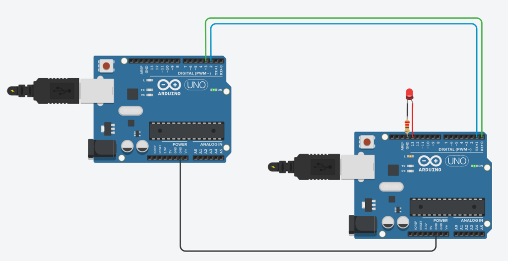 Dans ce projet on va voir comment contrôler une carte Arduino avec une autre carte Arduino. Pour cela on va utiliser une librairie appelé Software Serial qui va permettre de communiquer entre les deux en liaison UART. Cette libairie existe déjà dans Arduino ide sans rien à télécharger.