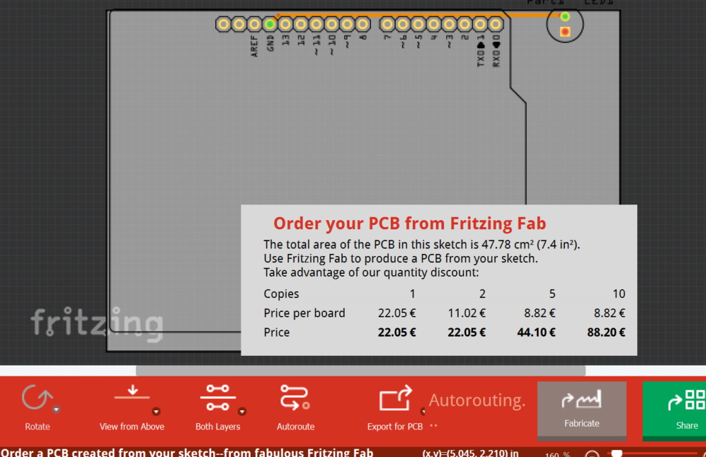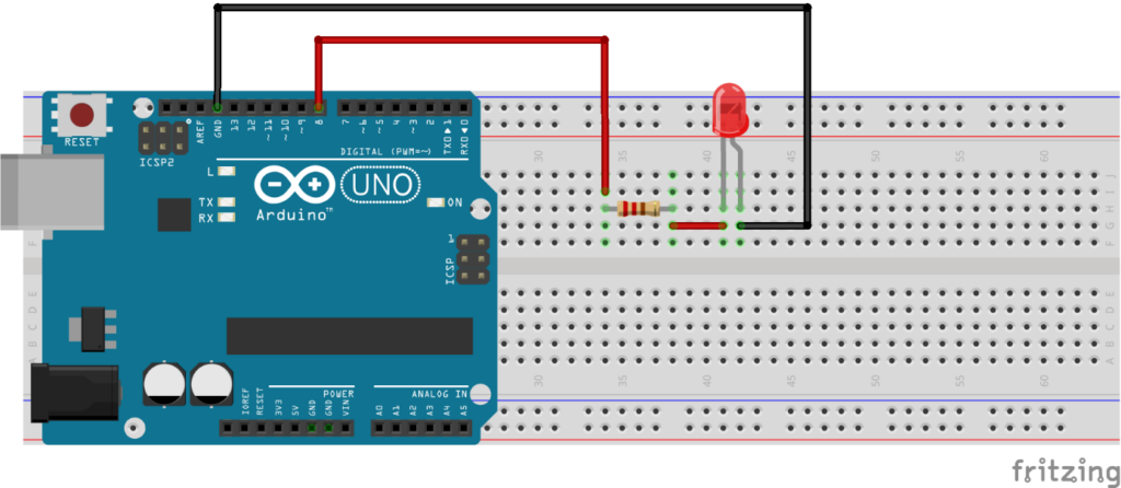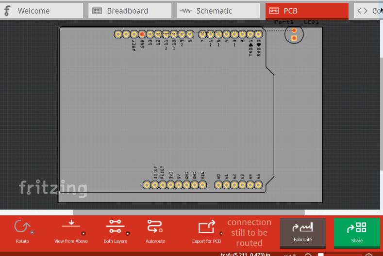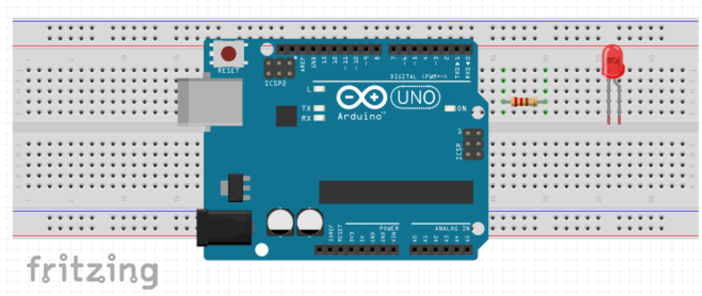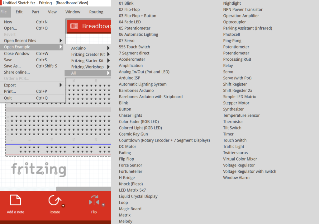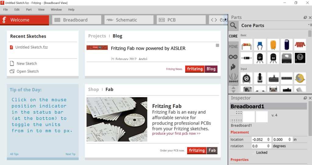 Enfin il nous faudra une résistance que l’on peut trouver sur Fritzing dans la partie Core : vous devez cliquer sur le composant et le glisser/déposer autour de la breadboard