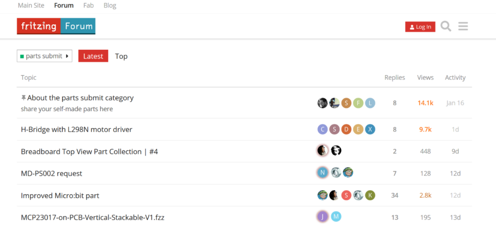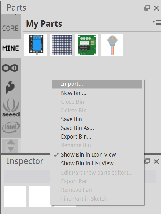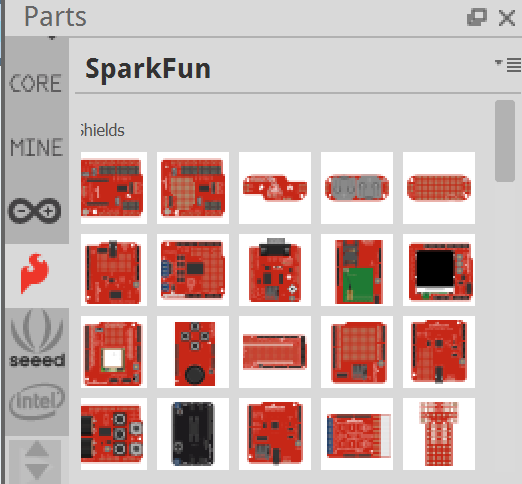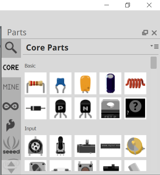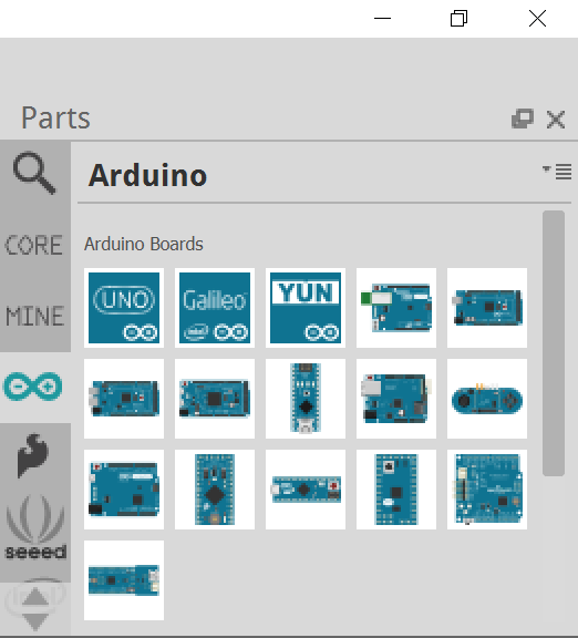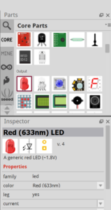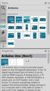Puis ensuite dans la partie composant, nous aurons besoin d’une led et d’une carte Arduino. Pour la led, vous la trouverez dans les composants core, ou bien en tapant led dans la loupe.