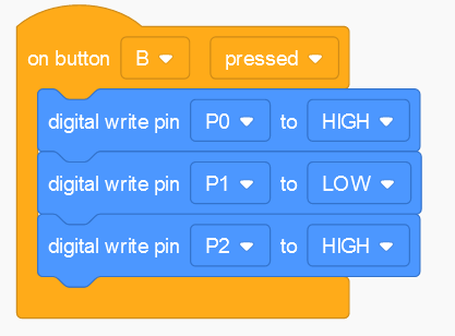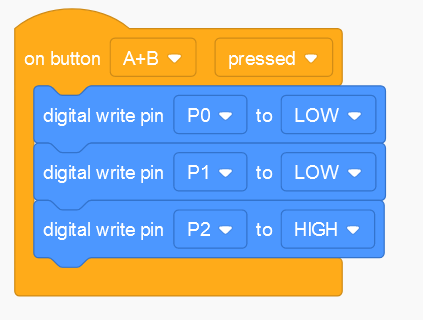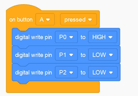 Ce bloc nous permet d’allumer la led en vert en appuyant sur le bouton de la carte Micro:Bit :