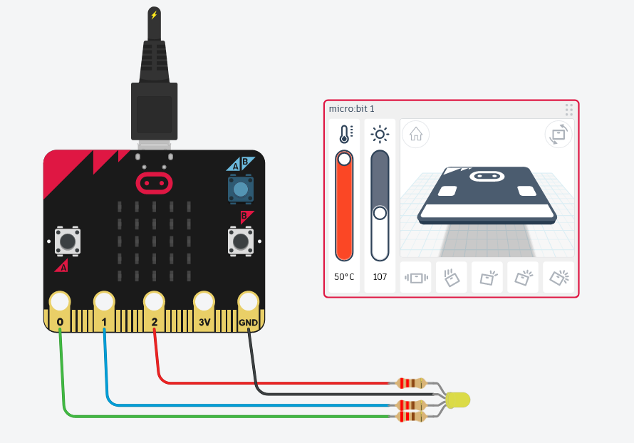 On utilise Tinkercad pour simuler notre circuit. Pour cela on programme sous forme de bloc.