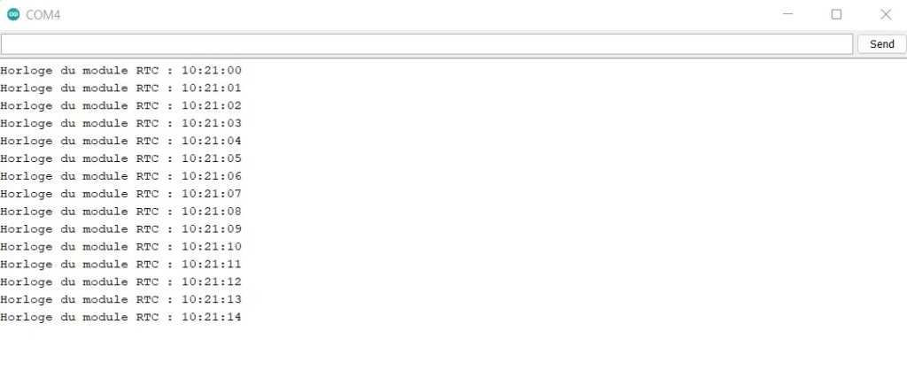 Grâce à sa mémoire non volatile, le module RTC conserve l’heure et la date même lorsque l’alimentation est coupée, ce qui évite de devoir réinitialiser l’heure à chaque démarrage de l’Arduino.