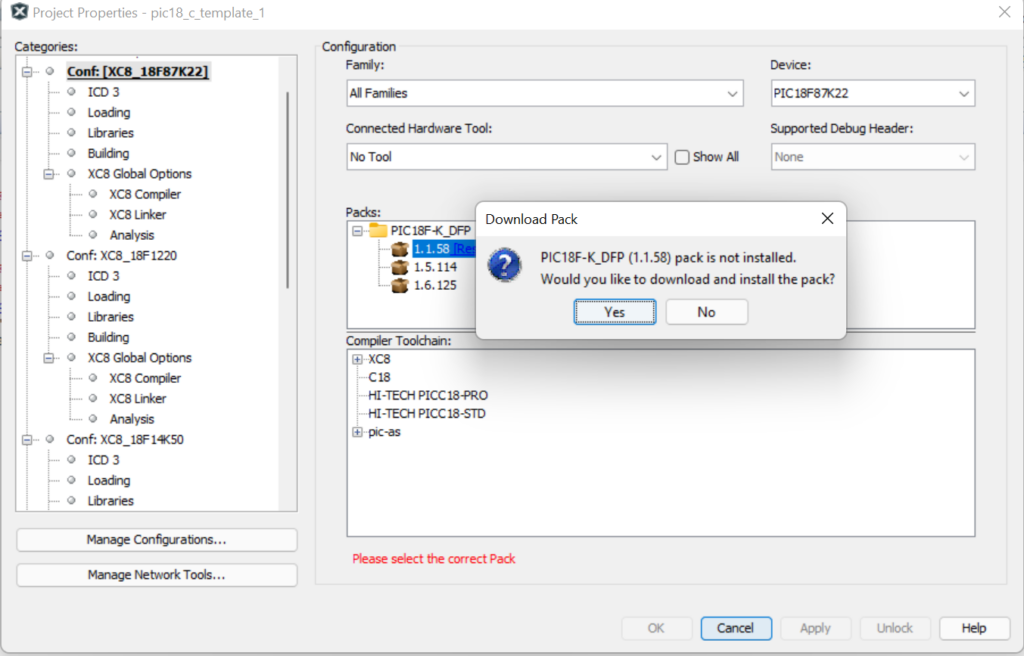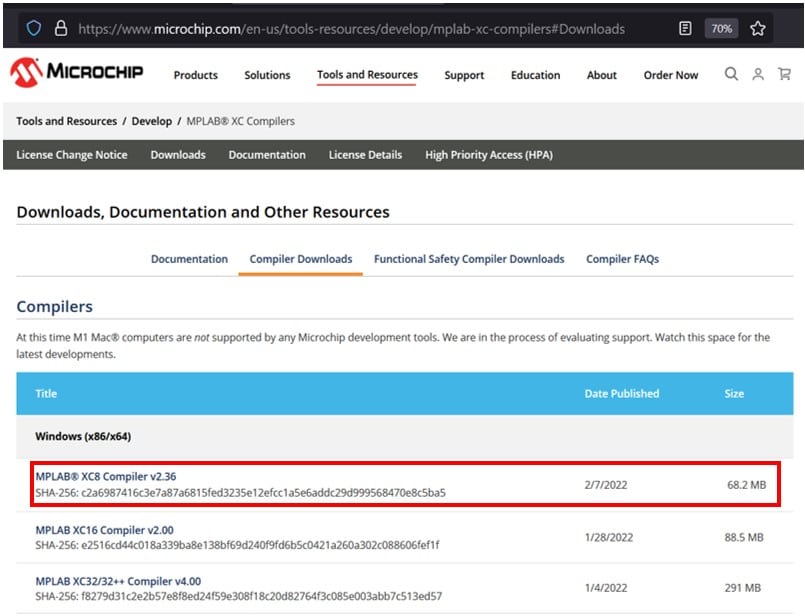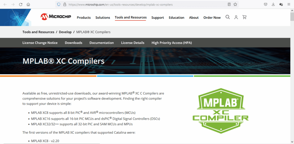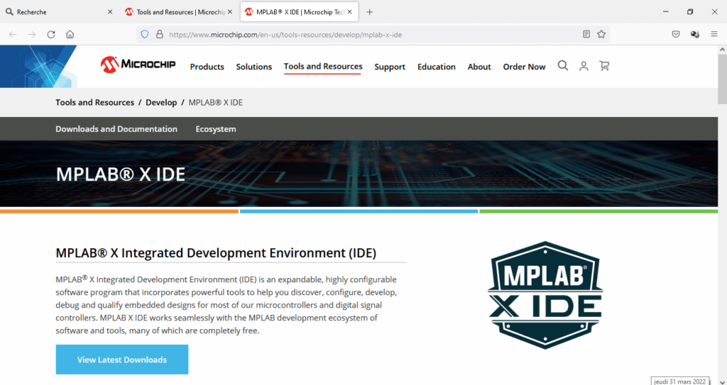 Pour pouvoir utiliser MPLAB X IDE, on a besoin d’installer un compilateur, qui est MPLAB Compiler. Vous pouvez le trouver sur ce lien.