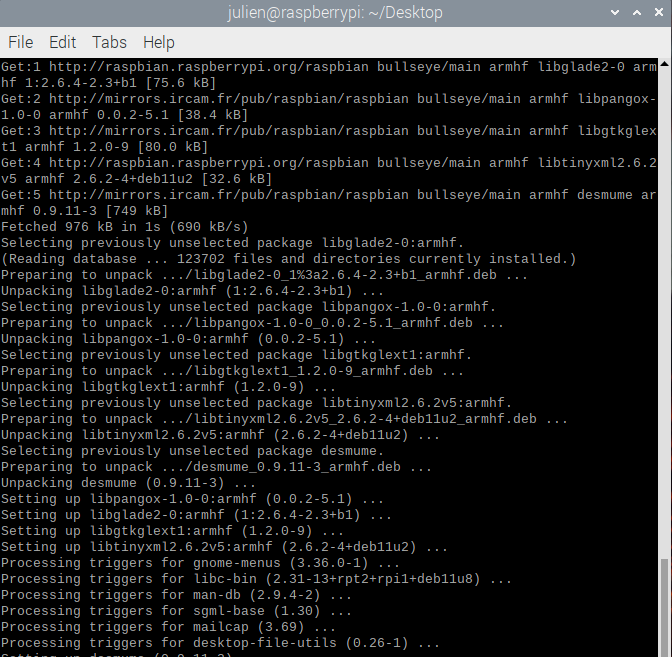 Introduction Desmume est un émulateur de Nintendo DS qui va vous permettre à jouer à des jeux de la console sur votre Raspberry Pi. Grâce à l’émulateur vous pourrez transformer votre Raspberry Pi en vrai console rétro. Voici la commande pour installer l’émulateur de DS : sudo apt-get install desmume Voici le déroulement de l’installation une fois la ligne de commande tapée sur le terminal : Une fois installé, vous pourrez retrouver Desmume dans la barre de menu de votre Raspberry Pi. Une fois lancé, voici l’interface de l’émulateur : Pour démarrer un jeu il faut cliquer sur File puis Open et choisir le fichier du jeu en format (.nds). Si vous souhaitez ajouter votre manette de jeu il faudra aller dans Config puis Edit Controls et Edit Joystick Controls. Arduino Factory n'est pas responsable de vos téléchargements ! Pour utiliser l’émulateur vous aurez besoin d’installer des jeux au format .NDS. Ceci est seulement légal si vous possédez la version originale du jeux sur Nintendo DS. Arduino Factory n’incite en aucun cas le téléchargement illégal de jeux video. Une fois votre Rom selectionné le jeu se lance automatiquement : Il vous reste plus qu’à jouer :