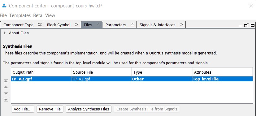 - Avalon-conduit : liaison permettant des accès directs aux composants interne d’un système Qsys.