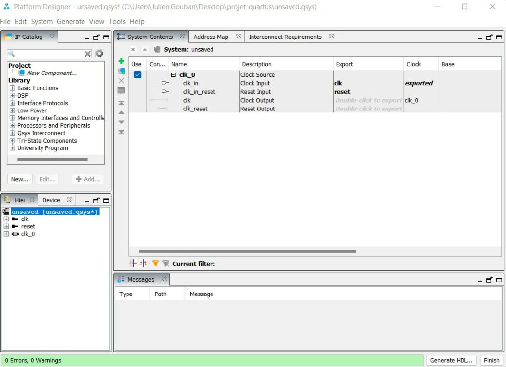 - Avalon-clock : liaison permettant de recevoir ou d’envoyer des signau d’horloge et de reset pour synchroniser les éléments du système
