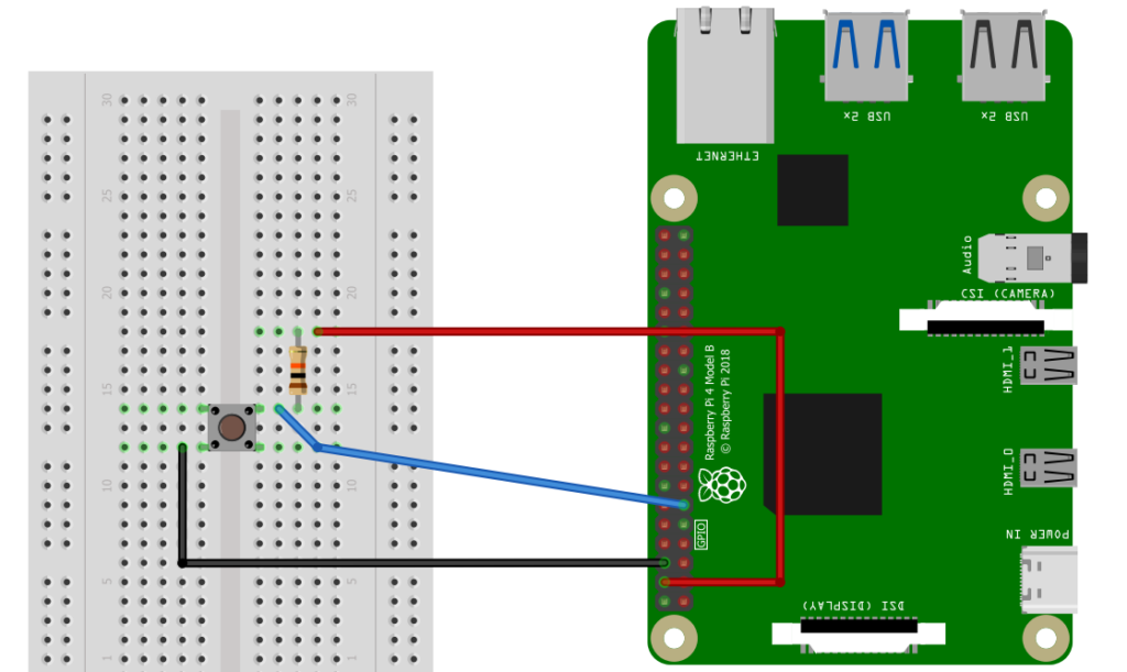 Voici le schéma pour relier le bouton poussoir à la Raspberry Pi :