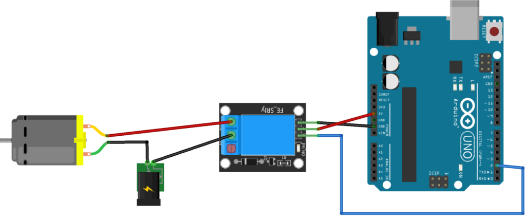 Le relais est très facile d’utilisation car il nécessite pas de librairie. Il suffit juste de déclarer la broche de celui-ci et vous pouvez le contrôler !