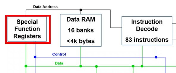 La Special function register est un registre situé dans la Ram qui permet de configurer les paramètres du périphérique. Il fait moins de 2 kilo-octets. La Special function register est obligatoire dans un microsystème.