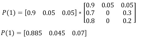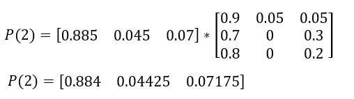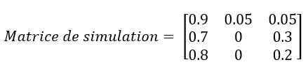 Pour avoir l’état suivant il suffit de multiplier l’état P(0) par la matrice de simulation :