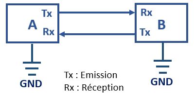 La liaison uart est asynchrone, ce qui signifie que la transmission ne nécessite pas d’horloge mais ajoute un bit de parité aux données avant la transmission.