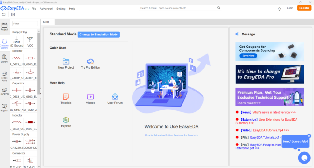EasyEDA est un logiciel permettant de concevoir des schémas fonctionnels de circuits imprimés ou de schémas électriques. EasyEDA, publié en août 2013, existe sur Mac Os, Linux et Windows. Le logiciel Easy Eda permet de simuler votre circuit avant de le réaliser en vrai.