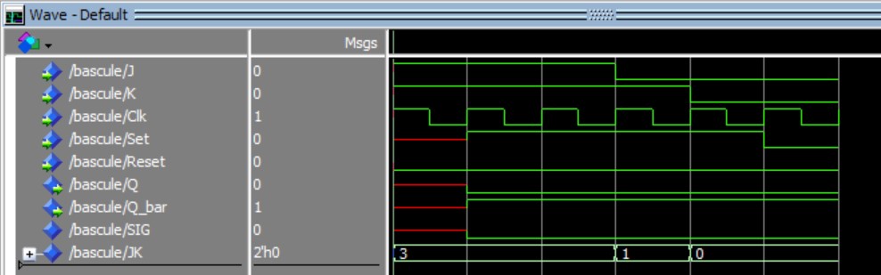 Lorsque J et K ont des valeurs différentes, la bascule JK change d’état selon une séquence bien définie. Si J est à l’état haut (1) et K à l’état bas (0), la bascule prendra l’état « SET » (1). Si J est à l’état bas (0) et K à l’état haut (1), la bascule prendra l’état « RESET » (0). Si J et K sont tous les deux à l’état haut (1), la bascule basculera, alternant entre les états à chaque impulsion de l’horloge.