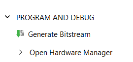 La dernière étape dans Vivado est de Generer le Bitstream. Vous pouvez retourver ce bouton dans la barre à gauche dans project manager :