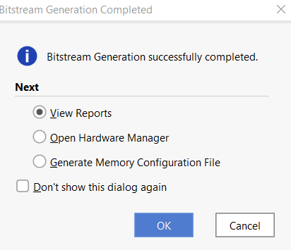 Vous devez attendre que le Bitstream soit finit d’être généré. Ceci peut prendre plusieurs minutes :
