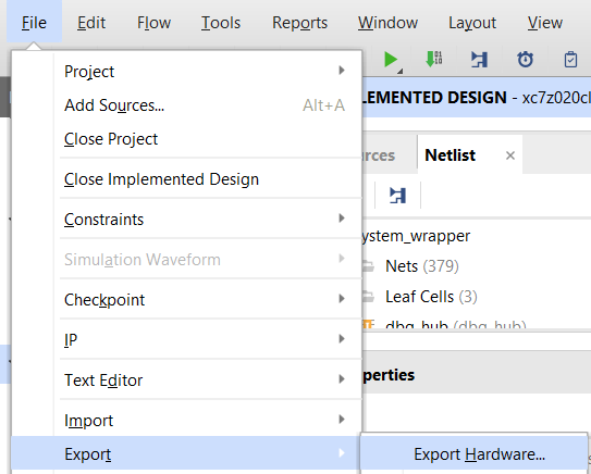 On va maintenant exporter le Hardware pour pouvoir l’utiliser sur Eclipse :