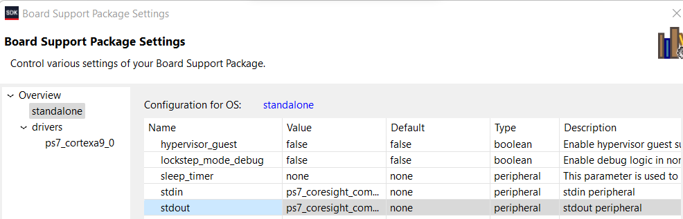 Avant de programme notre carte Zybo on va vérifier que le projet est bien dirigé vers la sortie de la carte avec stdout.