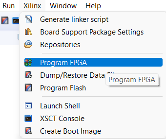 On va maintenant programmer notre carte FPGA en faisant clique droit sur le nom de projet dans l’arbre à gauche du Vivado.