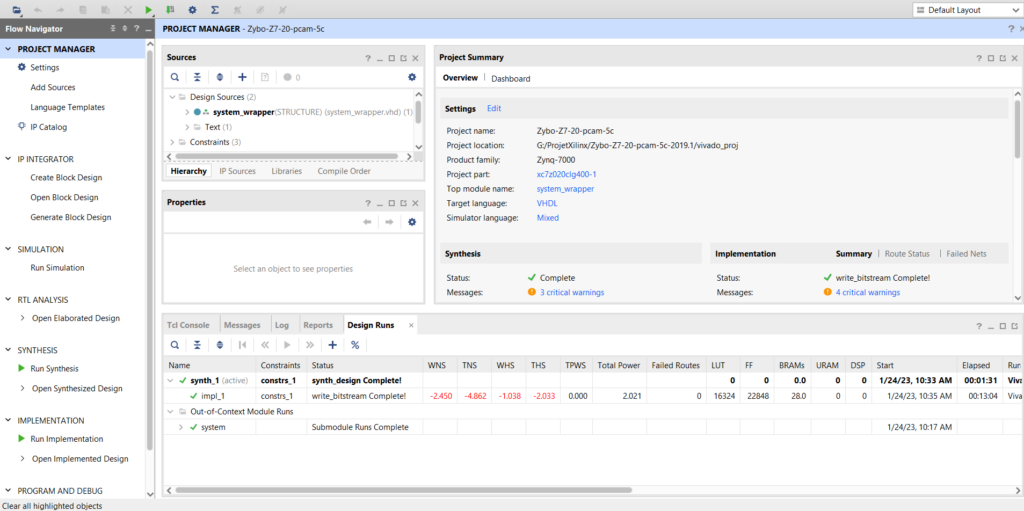 Le projet que l’on va utiliser vient du constructeur Xilinx. Il est adapté pour la version 2019.1 de Vivado. Si vous avez une autre version vous pouvez regarder sur le github de Xilinx.