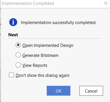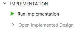 Une fois la synthèse terminée, on clique sur Run Implementation afin que le programme soit inmplémenté et optimisé pour la carte :
